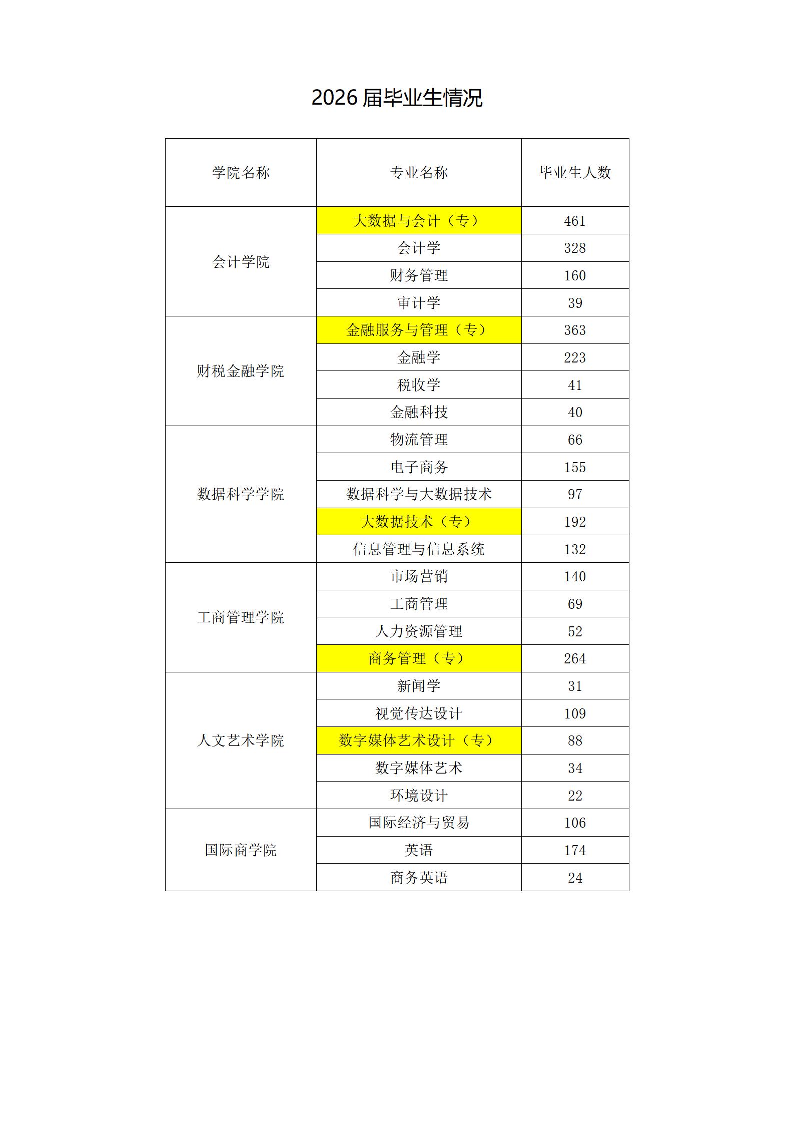 我校2026届毕业生共计3410人人,其中本科2042人,专科1368人,具体生源信息见附件。